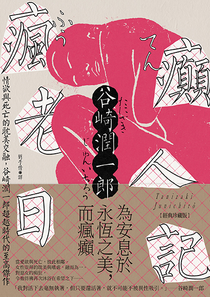 完成《瘋癲老人日記》之時,谷崎與書中老人同為七十七歲,現實生活中同樣面臨病魔的折磨與對與死亡的恐懼,作者或許投射了大量個人心境在書中的老人日記。作品一推出,嶄新的創作形式與主題,引起日本文壇一片譁然,眾人無一欽佩谷崎美學難以企及的巔峰。這本堪稱最後的傑作讓世人更能透徹了解谷崎潤一郎心中最神聖的畢生信仰──「女體崇拜與永恆之美」。