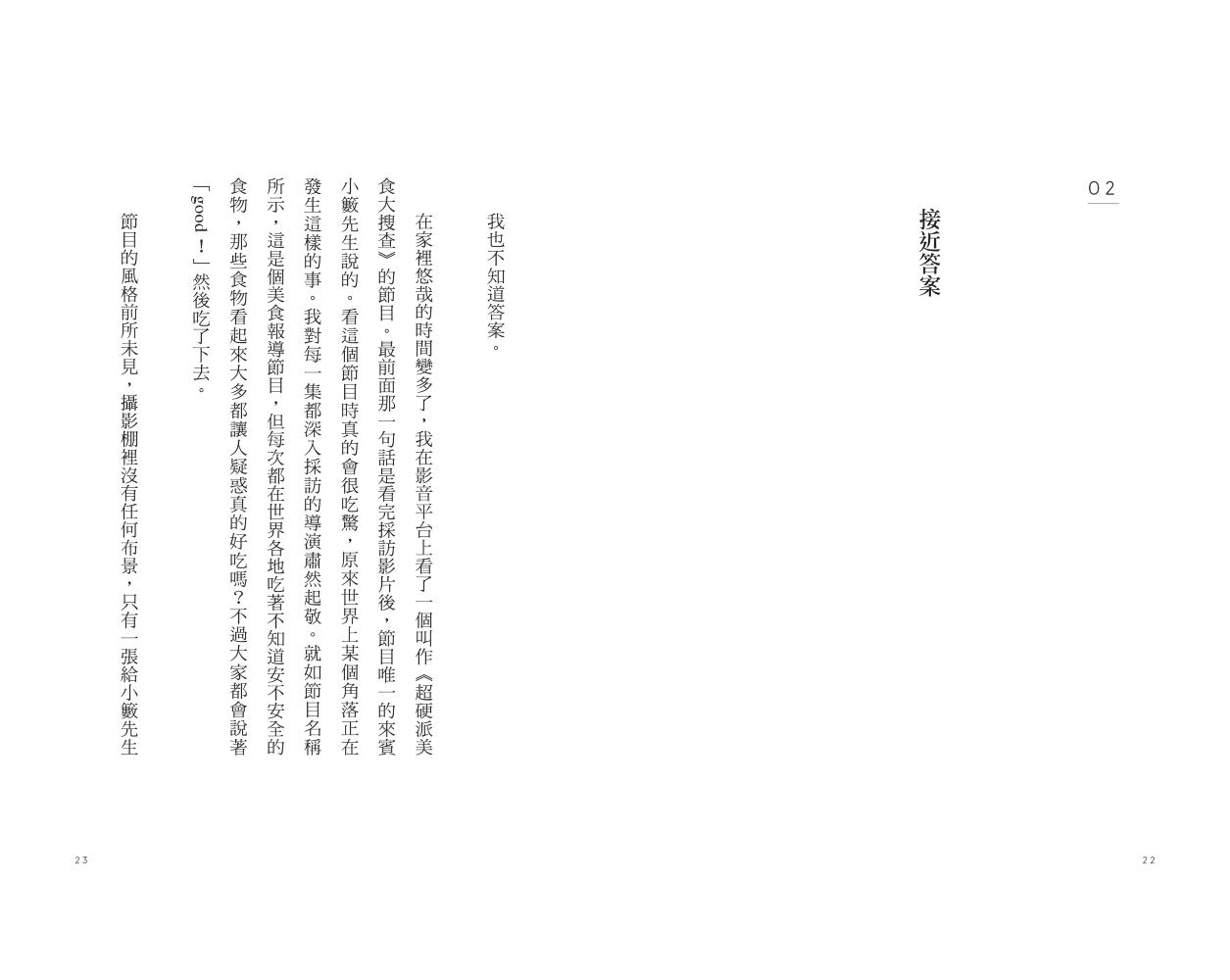 連載兩年的專欄文章,像是在瀏覽森川葵的私人社群帳號。她每個月寫一篇近兩千字的內容,即時地記錄了「我現在的生活」、「我現在的價值觀」。除了會看到參與日本綜藝節目《真假驗證中》成為「宇智波葵」的心情,也會看到這位奇妙女子在下班後的生活。她有不為人知的沐浴習慣、有從小到大都不擅長的弱點技能、有參與教育類綜藝節目、有看過《超硬派美食大搜查》、有過一段漆黑時期是活在深不見底的心靈黑洞、有領養兩隻貓、有一個長得像米倉涼子的媽媽......。