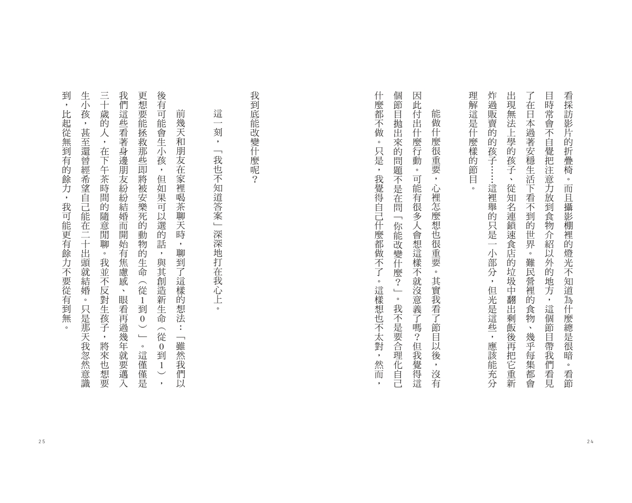 我並不反對生孩子,將來也想要生小孩,甚至還曾經希望自己能在二十出頭就結婚。只是那天我忽然意識到,比起從無到有的餘力,我可能更有餘力不要從有到無。