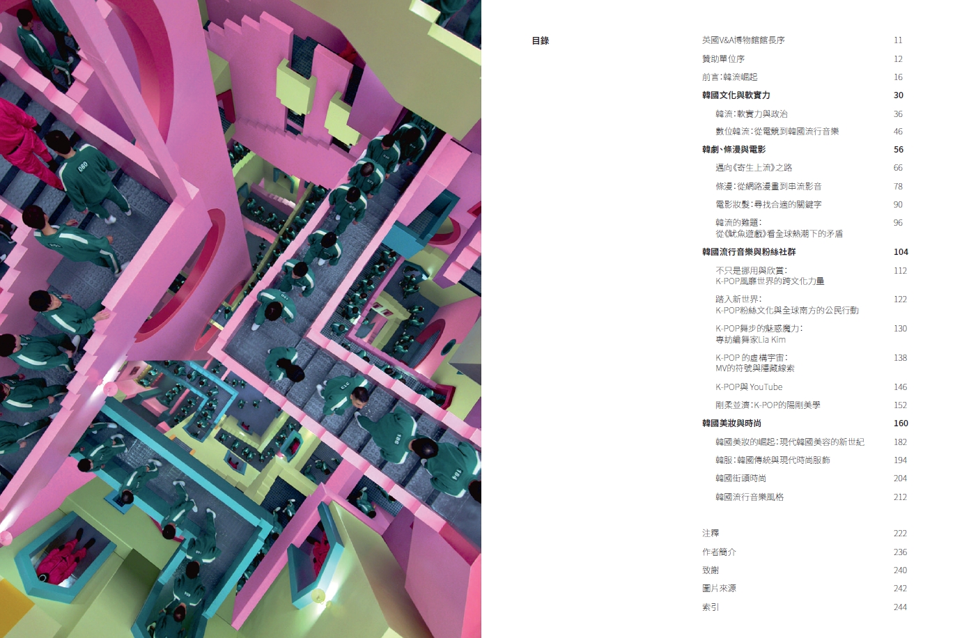 這股現象級的文化風潮,背後究竟有怎樣的歷史背景與運作機制?英國V&A博物館亞洲區策展人羅莎莉‧金(Rosalie Kim)匯集全球韓流研究專家,探討影視、條漫、音樂與時尚等領域的內涵,揭示韓國如何將文化資源化為撼動全世界的強大力量。