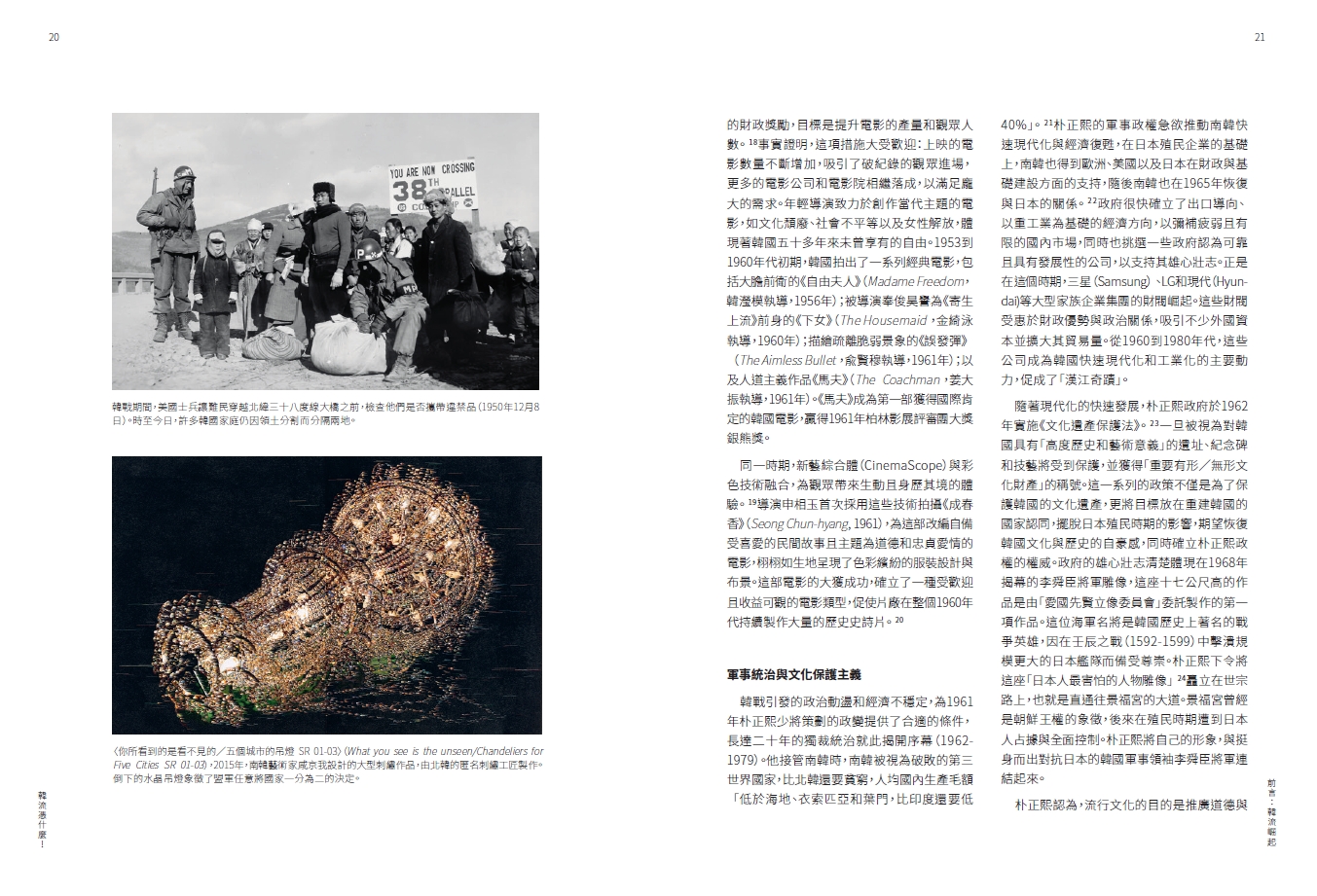 在歷史的視野下,韓流文化的崛起彷彿一齣高潮迭起、令人屏息以待的高張力戲劇;從1950年代韓戰後被形容為「地表最貧窮的國家」(GDP甚至輸北韓),南韓在短短半個世紀內便迅速興起,不僅在經濟上締造「漢江奇蹟」,更成為引領潮流的超級文化強國!
