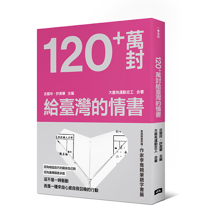 因為這種愛,在短短三個月內,一筆一畫一份份,集結了超過120萬份連署書——寫給臺灣的120+萬封情書,誓願為臺灣的未來一起守候的情深意切。
