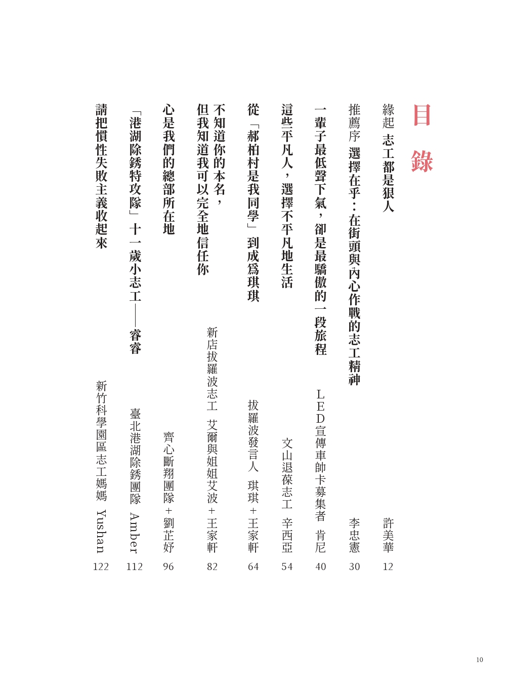 從最初的情緒衝動,到深層的信念選擇,每一位志工走過的路,都像追求人生意義的內戰,實踐自己對這塊土地的承諾與自由。