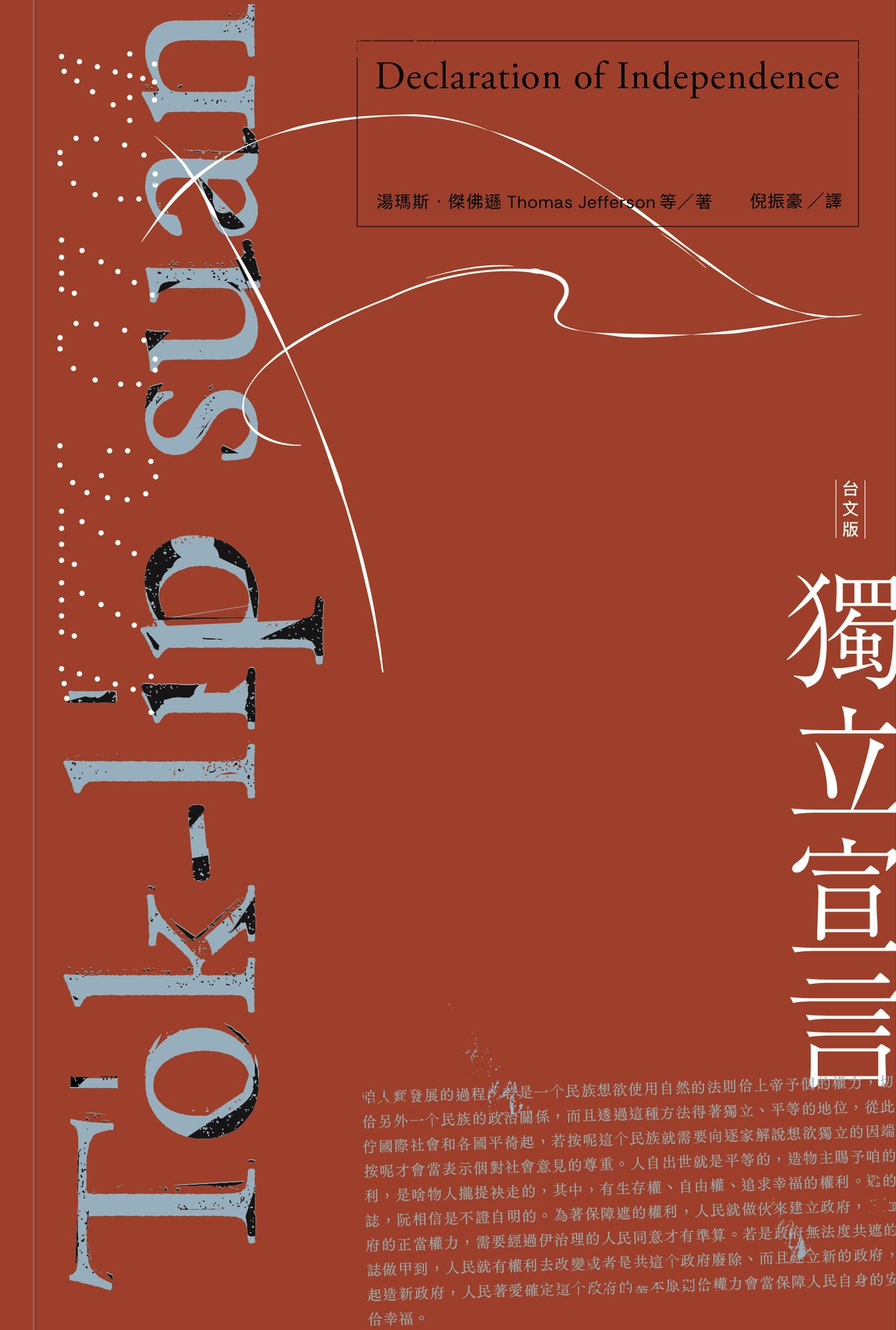 這段鏗鏘有力的文字,是人類歷史上最重要的文獻之一——美國獨立宣言的核心精神。本書首次將這份奠定美國立國精神、並深刻影響全球民主化發展的宣言,以台文完整翻譯,並附上英文原文,及華文譯文作為對照。