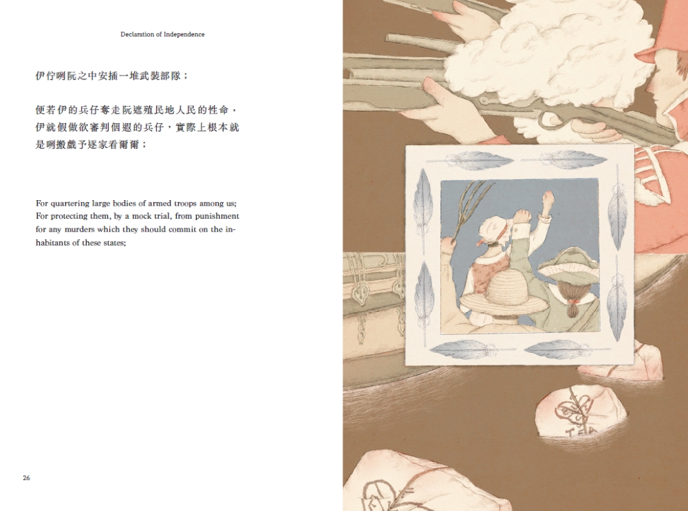 透過經典著作的在地化,以及台灣插畫家對於經典內容的描繪,本書不僅忠實呈現宣言中「人人生而平等」、「生命、自由與追求幸福」等核心理念,更透過譯介連結在地脈絡,使這份宣言中主張的普世價值,與台灣人民對民主與自由的長期奮鬥產生深刻共鳴。