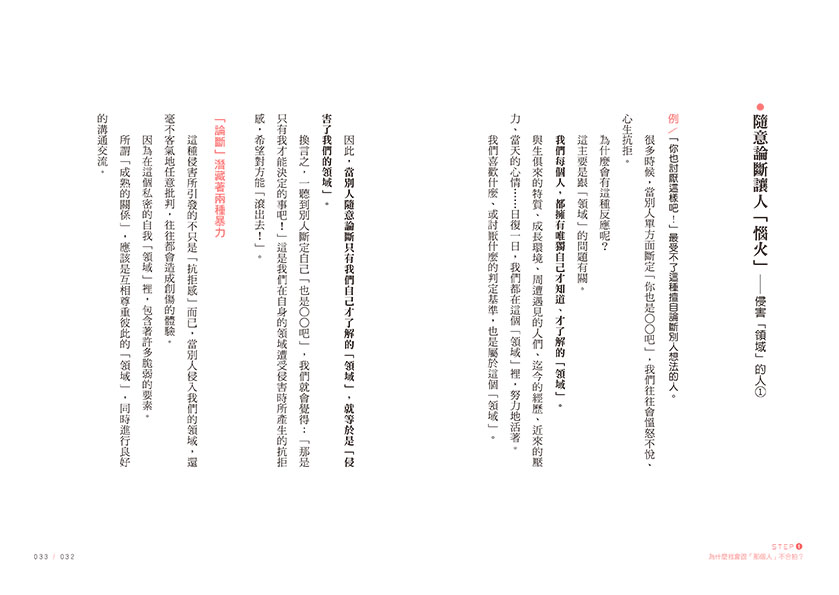 每個人都有唯獨自己才了解的「領域」,當別人對我們指手劃腳,就等於是「侵害了我們的領域」,我們自然會惱火,認為對方沒有資格自作主張。