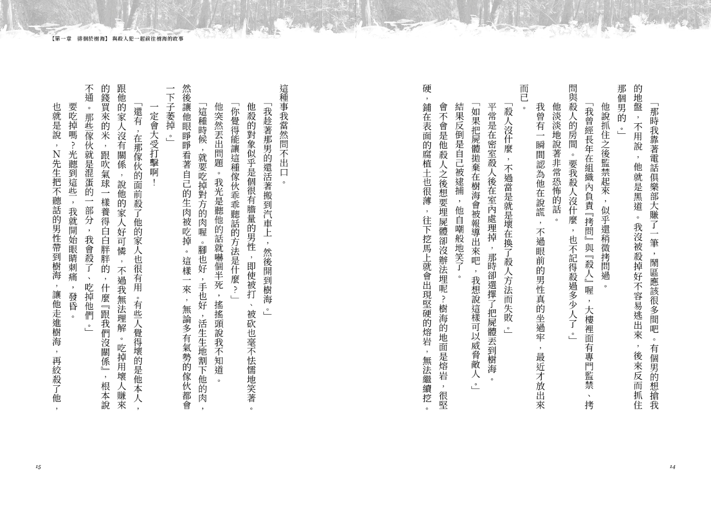 Ⓞ打破迷信,以第一人稱視角帶領讀者走進自殺森林