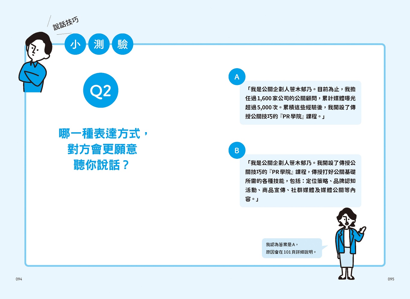 作者笹木郁乃原本是個對「說話技巧」一竅不通的理科研究生,憑著滿腔熱情進入公關公司上班,卻因為說話結巴、表達無趣,拿到了全公司最差的C等考績。
