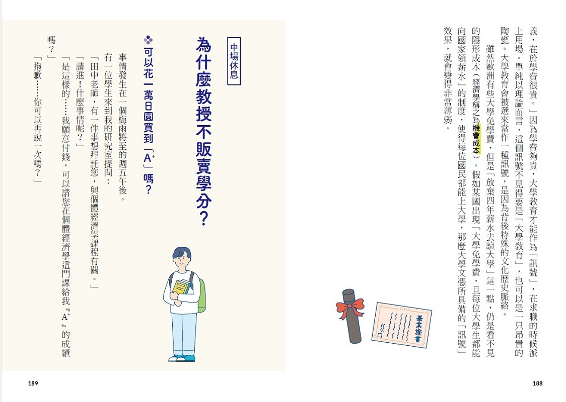 這本書是根據我在早稻田大學為一年級同學開設的必修課《個體經濟學入門》所寫成的。在這門課程當中,我教授的是正統的個體經濟學理論,所以會運用很多算式、圖表,扎實地說明理論。不過,光談理論和算式,同學們會感到非常痛苦,更重要的,是我這位負責講課的老師也會覺得很無趣。