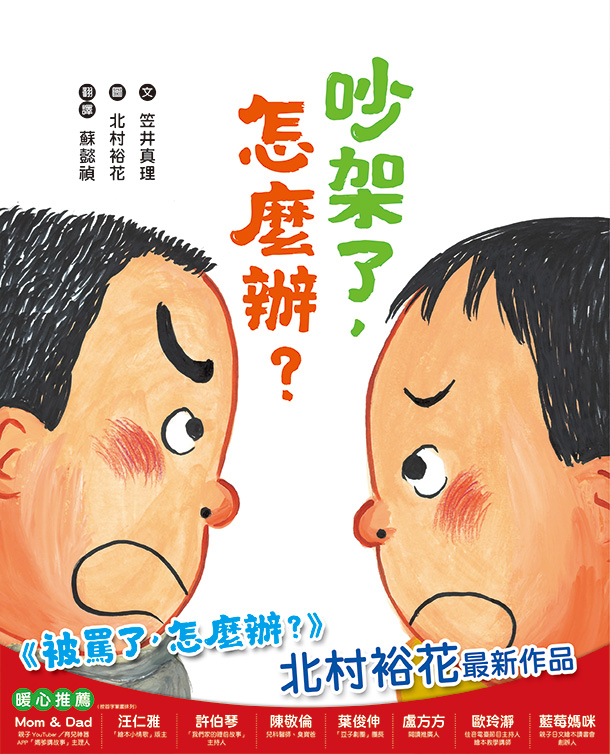 《吵架了,怎麼辦?》是北村裕花繼《被罵了,怎麼辦?》的另一力作,如此生活化的主題,非常能引起大小讀者的共鳴,許多大朋友看了本書以後,更會與童年時的生活經驗連結,並與自己的孩子分享。這個可愛又溫暖的故事,是關於價值觀,關於友情,關於誤會與爭吵,當然也關於和解,誰說所謂道德教育或公民與道德就只能以生硬的規定充填在孩子的腦海中?