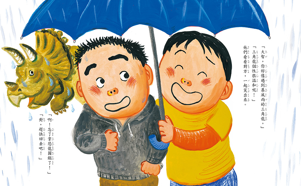 《吵架了,怎麼辦?》鮮活的搬演出孩子的日常,看似平淡的對話與場景,北村裕花擅長用「問號」打開思考的維度,「為什麼?怎麼辦?」把問題拋給孩子去思考,孩子與孩子之間產生對話與交流,書裡書外,建構出一個專屬於孩子的空間與舞臺。原本共享恐龍圖鑑的美好情誼,卻因為小小的誤會傷了感情,看小智在書上又是筆記、又是畫線、又是貼補,對這本恐龍圖鑑的喜愛溢於言表,兩個小小愛書人,各有立場,只是誤會沒有對錯,讓孩子去思考爭吵的背後,如果換個角度,就會有不一樣的看法,故事同時也提醒孩子,話語是有力量的,每一句話、每個行動都需要慎而重之,吵架之後更要勇於承認錯誤,努力修補關係。友情和心愛的恐龍圖鑑一樣重要,要是因為小小的誤會,傷了感情還丟了書,那多不值得!