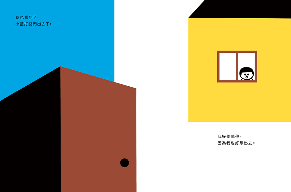 在書裡我們會看到,擔心害怕的小黃,也有自己的想法。內向的小黃有自己解決問題的方法,而且早就到外頭闖蕩的小藍,也需要小黃的安慰