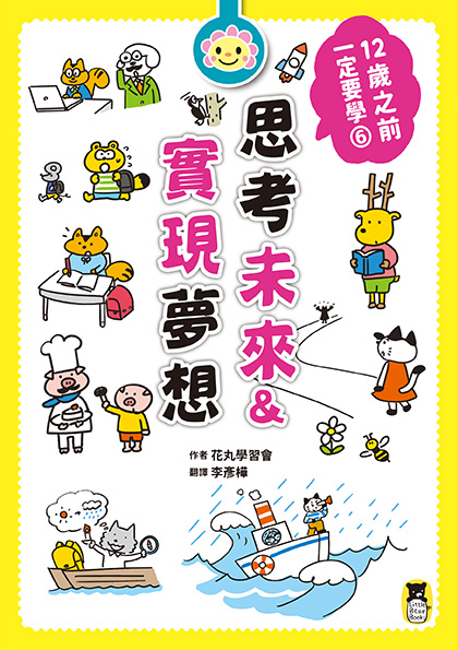 《12歲之前一定要學:6思考未來&實現夢想》是為了正在慢慢從孩童轉變為大人的「大孩子」所寫,以回應此時期各種對未來的不安與對成長的焦慮。書中以一群可愛的「動物同學」討論彼此夢想的情境漫畫揭開序幕,當中有已經找到夢想卻不知如何實踐的、志趣廣泛所以還在三心二意的、想法變動導致至今毫無頭緒的……每個人都可以在這些角色身上投射自己的心情,產生「對,我也有這種煩惱!」的共鳴。而貫穿全書的熱血教師──「金剛老師」身為作者的化身,便是引導讀者思考與將來有關的一切、解答疑惑的關鍵人物。