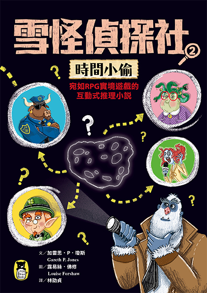 「雪怪偵探社」系列推出第二集嘍!作者加雷斯.P.瓊斯以「時間」為主題,邀請讀者們跟隨雪怪偵探克勞斯一起動腦找出小偷。等等,克勞斯這次因涉嫌重大,不能陪大家解開謎團了,「你」必須挑戰獨自辦案,與書中人物的互動體驗也會更刺激!