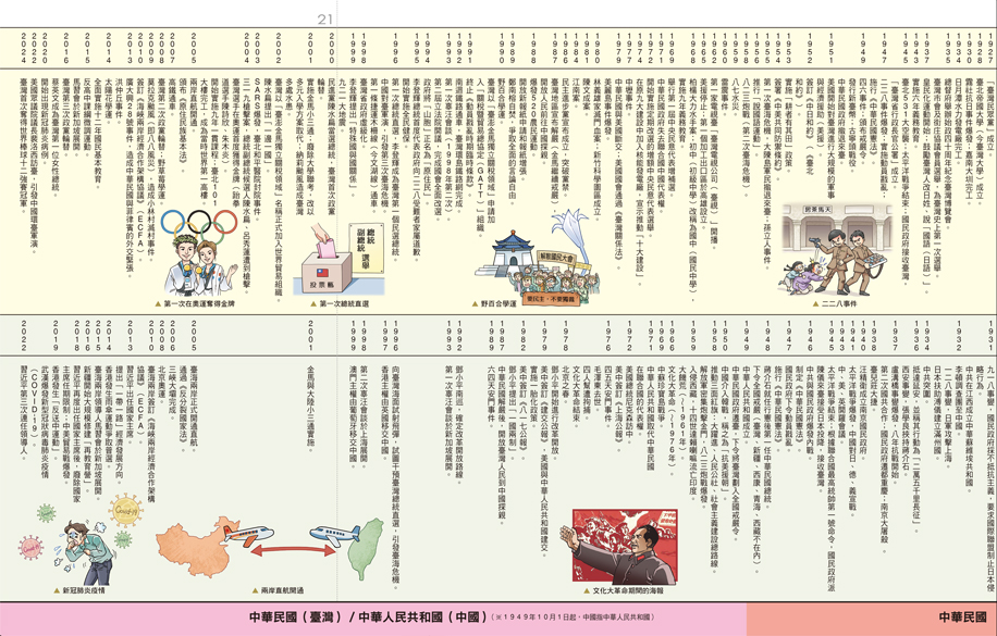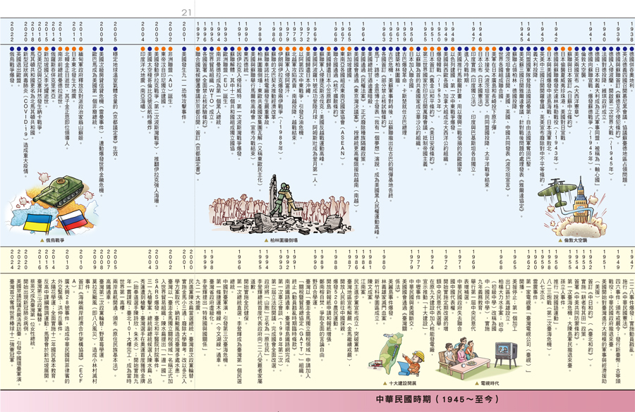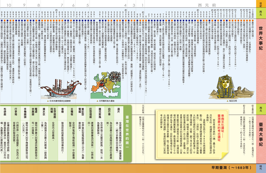 ★收錄自700萬年前人類出現至21世紀現代,涵蓋世界、臺灣、中國歷史的重大事件。
