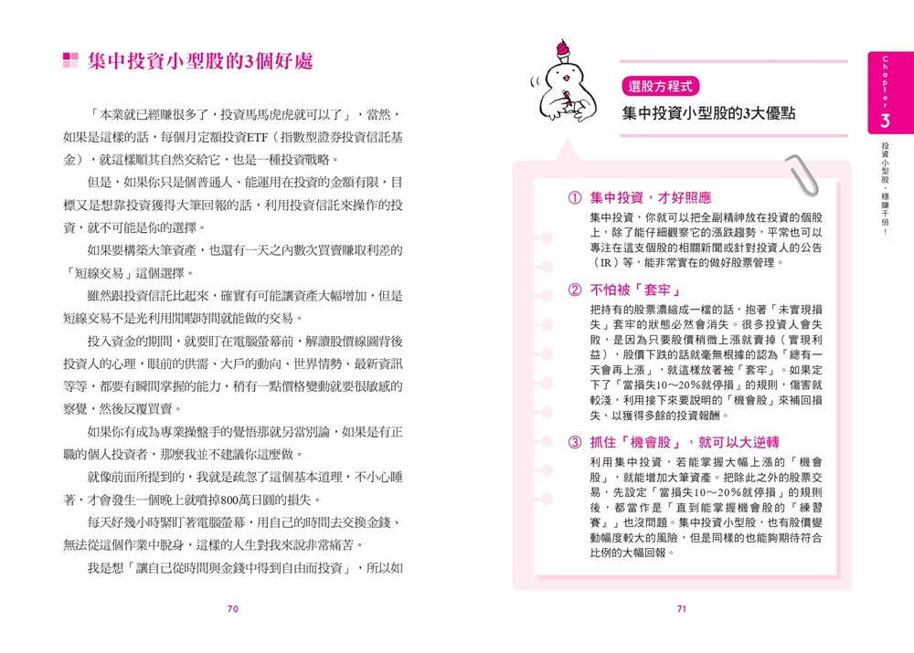 ‧本金10萬以下的小資,不要學人家分散風險和買基金,那是本金百萬以上才需要的。