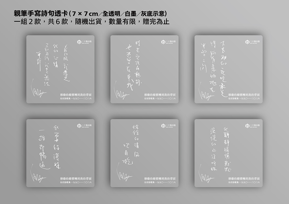 ★詩人伍佰親筆手寫詩句透卡(7×7cm,全透明,白墨/1組2款,1全6款,隨機贈送,數量有限,送完為止)