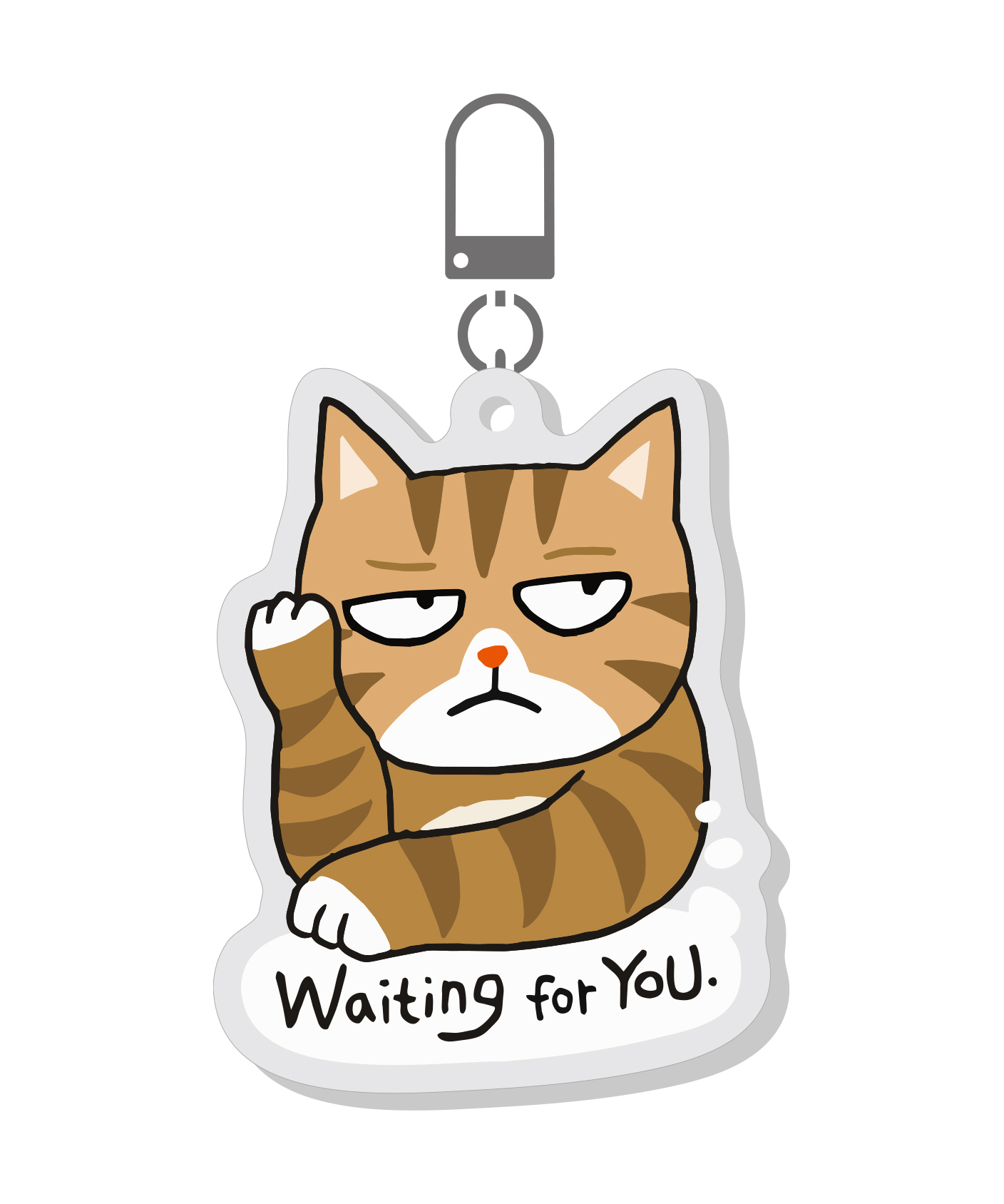 鑰匙圈上的阿貓,正用牠最經典的「無奈厭世臉」瞪著你。上面寫著「Waiting for You.」